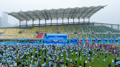 启动仪式上,武术表演刚劲有力,瞬间点燃现场氛围;专业领操员带领全体参赛选手舒展热身,为赛事做好充分准备。